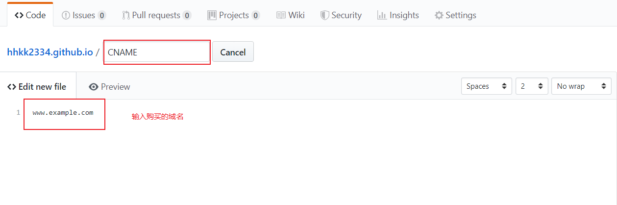 - 文件名为 CNAME,内容为购买的 DNS 地址