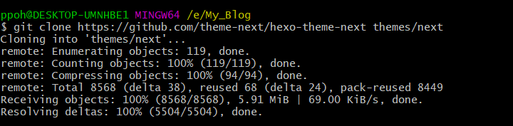 1 | $ git clone https://github.com/theme-next/hexo-theme-next themes/next |