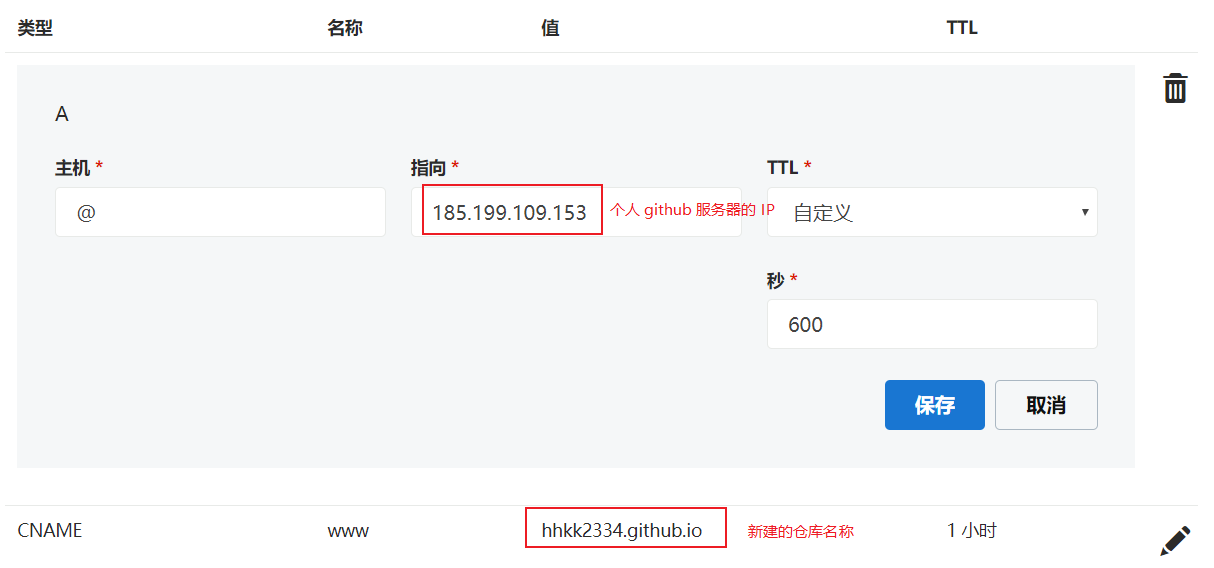 - 设置如下:对应 github 服务器 IP 地址和 github 项目名称