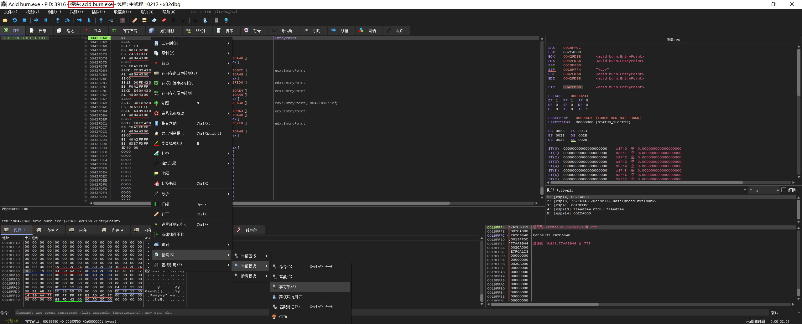 先 “F9” 运行到程序模块(主模块),之后再右键—>搜索—>当前模块—>字符串。