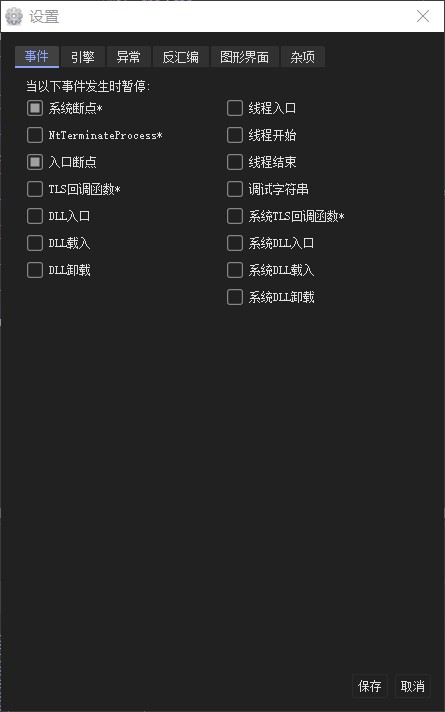 之后就是按 “F9” 直到让程序运行起来(我这边将 选项—>选项—>事件 中的 “TLS回调函数” 取消了,所以操作中少按了一次 “F9”)。
